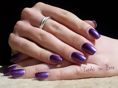 C’est un violet, tirant plus vers l’indigo, remplis de paillettes violettes limite roses ! Très original et magnifique rendu !!! Il est vraiment scintillant j’adooore ! Les photos ne lui rendent vraiment pas du tout hommage…