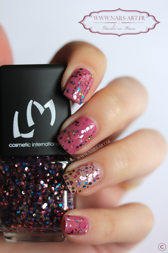 Voici le premier vernis 100% paillettes de la collection. Artiste possède une base transparente est remplie de paillettes hexagonales roses, mauves, jaunes et bleues ainsi que de quelques fines paillettes mauves. Je l’ai ici appliqué seul, en 3 couches sur l’annulaire et sur les autres doigts, en 2 couches sur Pansies de la collection Spring is Coming de chez LM Cosmetic.