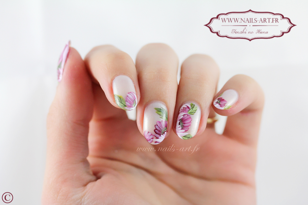 Moi je dis que je pourrais faire dans la voyance. Après tout, je l’avais prédit que ça sentait le nail art (en même temps, ce n’est pas comme si tu n’y avais pas fait allusion hihi). En tout cas, je suis vraiment FAN du résultat. Ta maîtrise est vraiment à couper le souffle. Ca donne vraiment envie de s’essayer à la technique car tes fleurs ont une telle profondeur et ressortent TELLEMENT BIEN sur la belle base blanche laiteuse de chez LM !!! C’est vraiment superbe, et les feuilles sont également ravissantes.